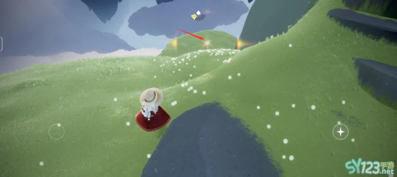 2、到达蝴蝶平原,视角往右可以看到云洞,飞到这里。