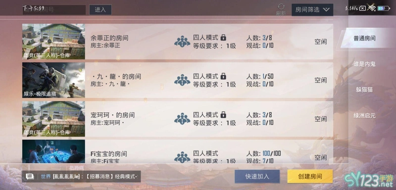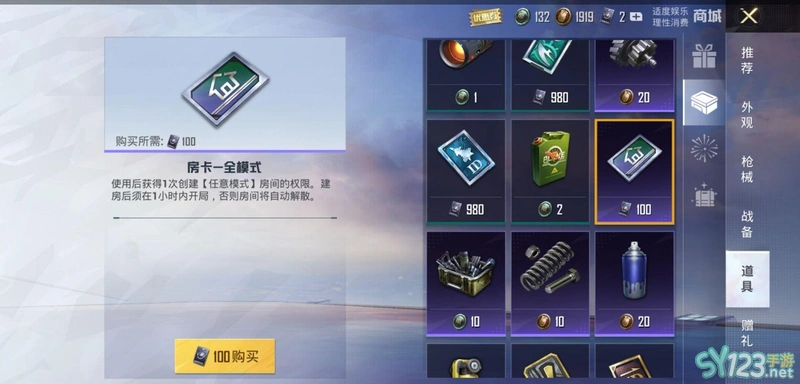 1,和平精英创建房间需要先获得权限,进入游戏进入商场可以通过购买房卡获得创建房间权限,进去商城,点击道具,选择下面的房间图标,可以看到房卡,获得房卡后,可以创建1次任意模式的房间