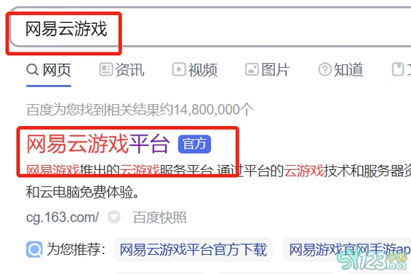 1、在浏览器上搜索【网易云游戏】,点击进入官方网址。