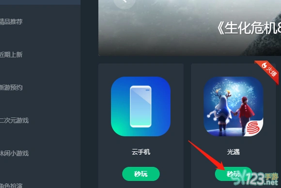 2、进入后找到光遇,点击【秒玩】。