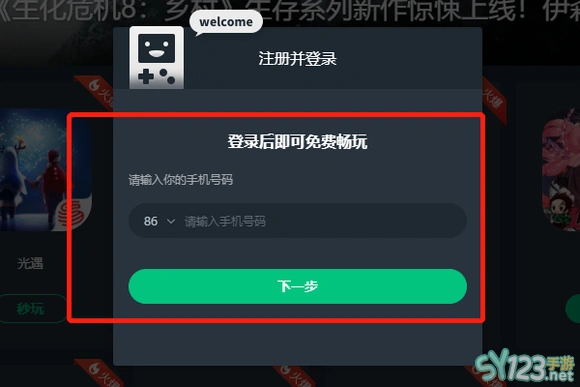 3、然后,输入手机号码获取验证码,注册并且登录。