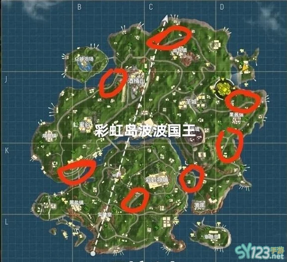 2、年兽啵啵在彩虹岛地图的刷新点,如图下所示。