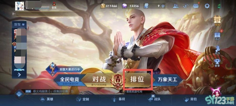 1、打开王者荣耀,点击排位。