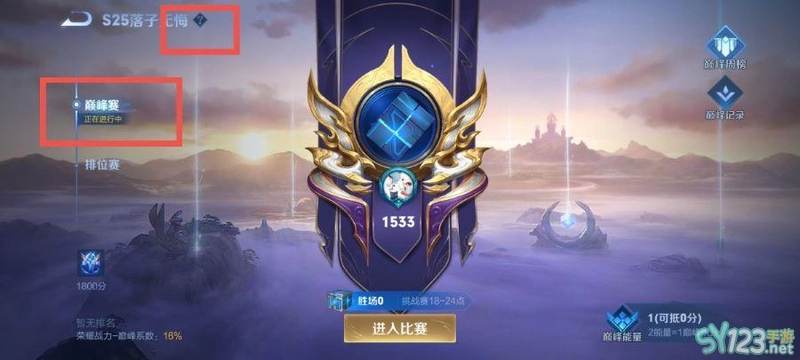 2、一定要点击巅峰赛,然后再点击上边的问号。
