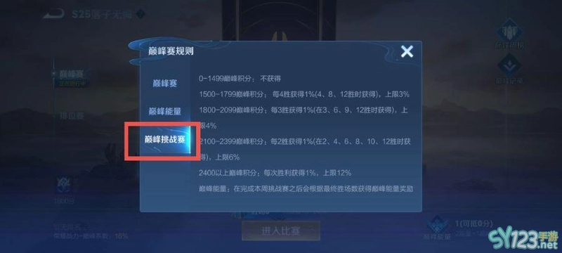 3、点击巅峰挑战赛,一直往下拉就可以看到战力上限说明。