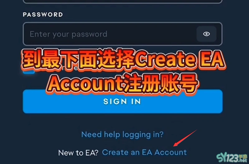 1、进入游戏后点击左下角的EA Account进入注册页面