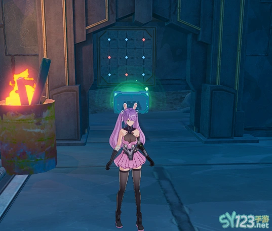 幻塔游戏中,玩家在遗迹B-01仔细观察就会发现门后有个九宫格的图片,只需要按照图片上的蓝色点位依次点亮就可以开门拿取宝箱了。
