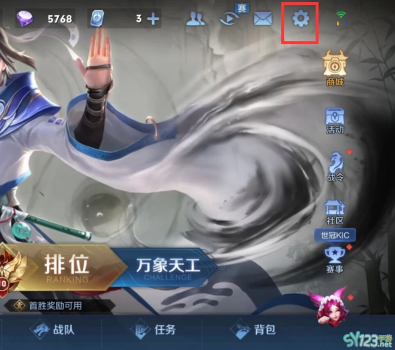 第一步:在王者荣耀的首页点击右上角设置。