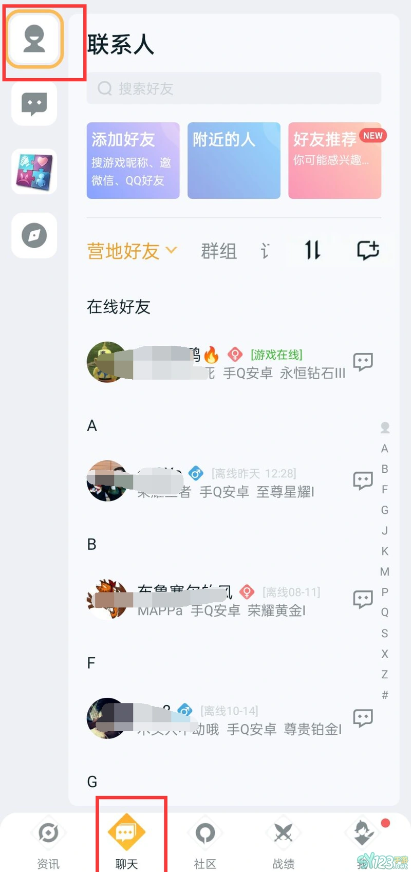 第一步:打开王者营地点击底部聊天,并点击左上角联系人按钮。
