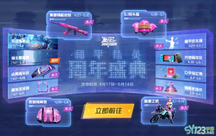 和平精英周年庆是每年的5月8号左右,周年庆活动还是非常丰富的,玩家们可以免费拿到一些枪的皮肤,以及头盔、衣服等这一系列的奖励,这其实是官方给玩家的福利。