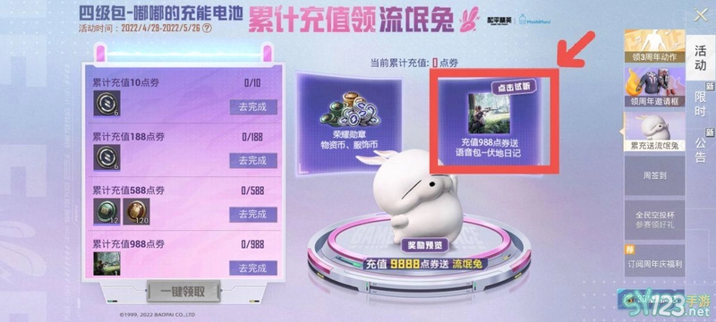 和平精英的伏地日记是一套新出的语音包,不能直接免费获取,需要玩家在游戏中累计充值满988点券后,就可以在活动页面领取并在战备中装备了。