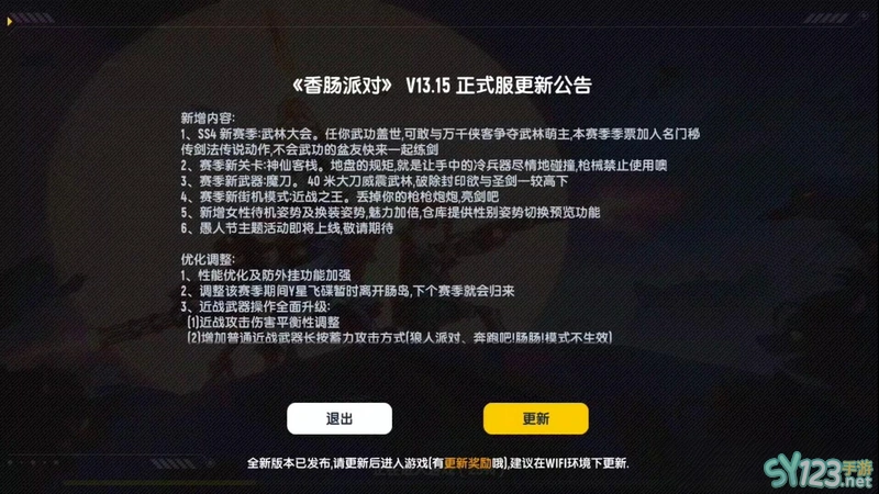 1.打开香肠派对,在弹窗中选择更新按钮,点击即可更新