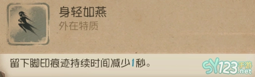 外在特质-身轻如燕:脚印持续时间减1秒。