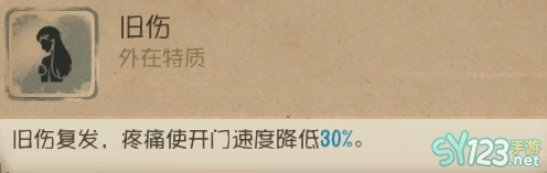 外在特质-旧伤:旧伤复发,疼痛使开门速度降低30%。