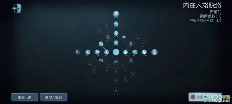 古董商的角色定位为牵制型求生者,转式可以为古董商提供5%的移速加成,在平地牵制或拉距离时能为求生者带来增益效果。因此配合【飞轮效应】、【膝跳反射】能提升古董商牵制能力,具体天赋如下图所示: