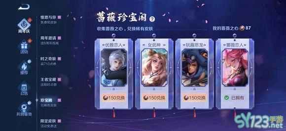 2、王者荣耀兑换蔷薇恋人这款皮肤要150个蔷薇之心。