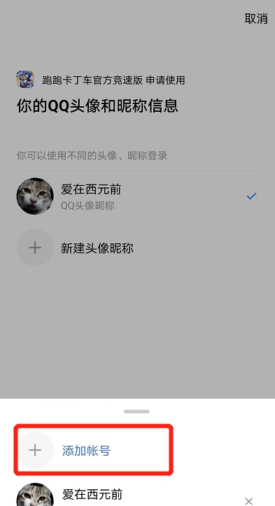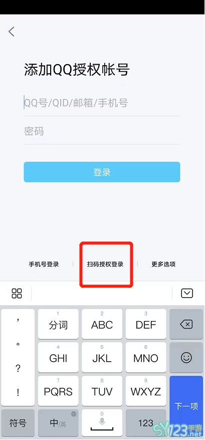 在添加账号界面中点击扫码登录选项,将二维码给好友扫一下即可登录,如图所示