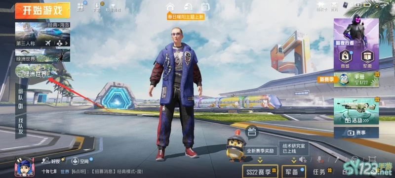 1、首先点击游戏大厅左侧的【绿洲世界】进入。