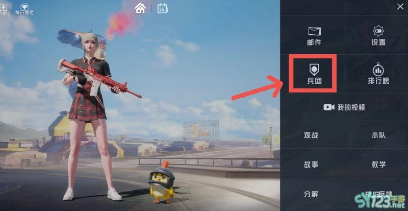 1、首先打开游戏进入主页面之后,点击右下角的三角标,找到兵团,点击进入。