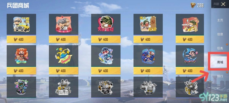 2、然后点击右侧第四项的商城,就可以使用军团币兑换物资。
