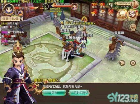 2、一转任务的接受则是有个任务向下的箭头,点一下就有接受了。然后点击任务就会自动寻路,找到相应npc选择转职就可以了,1转都是固定的,所以不需要顾虑什么直接转就好了。
