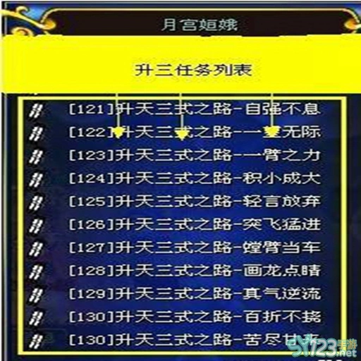 一、序言:热血江湖升天三式(8转)任务:需要完成121-130级对应的11个任务,9个为打怪任务,2个为对话任务,其中真气逆流[129]与苦尽甘来[130]对话操作即可完成。