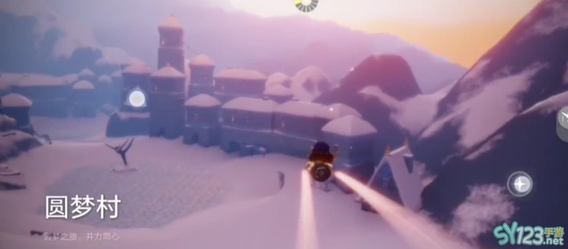 1、进入霞谷大厅可以看到右侧亭子后面有一个洞,打开光门就可以进入圆梦村。