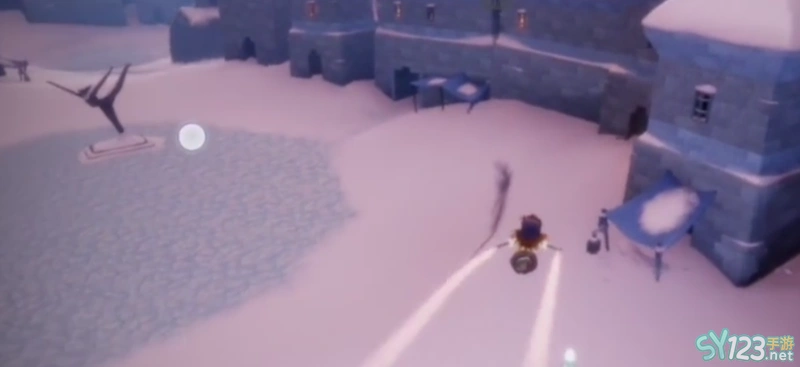 3、然后飞到向导先祖身后带有棚子的房屋左侧就可以看到先祖了。