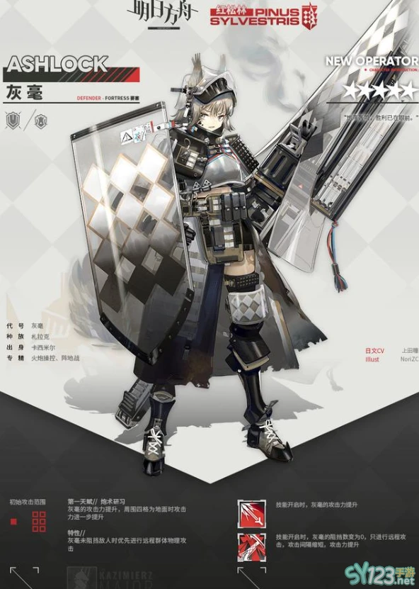3、灰毫的一技能是提高攻击力,二技能是0阻挡并且加快攻速和攻击力进行远程攻击。这两个技能全都是偏向于输出的,而输出盾的费用都十分感人,所以灰毫肯定是很难用的。