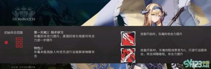 2、灰毫的天赋和特性都是加强自身的,当灰毫放在周围没有墙体的位置的时候可以提高自己的攻击,并且在没阻挡时候进行的是群体物理攻击。这个就说明灰毫的用法并不是去阻挡敌人,更多的是放在空地上当输出。