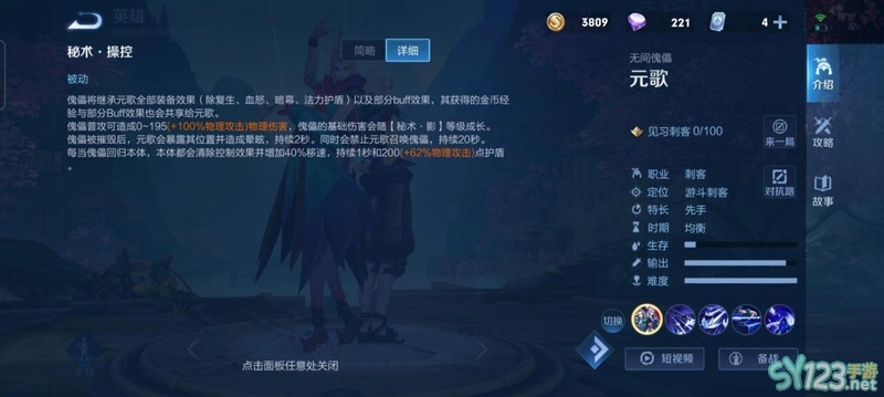 元歌的傀儡有着本体全部的buff属性,并且傀儡击杀的金币也会共享给本体,本体控制傀儡,普攻会给敌人造成一定的物理伤害。